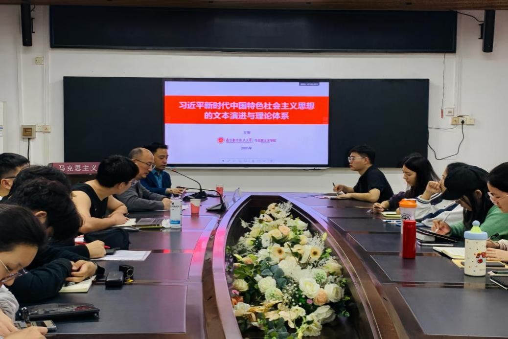 11月14日晚上,马克思主义学院在求是楼307室举办“求实”学术论坛系列讲座第90期。本次讲座的主题为“习近平新时代中国特色社会主义思想的文本演进与理论体系”,由南京航空航天大学马克思主义学院院长、博士生导师王智教授主讲。讲座由谭元敏教授主持,学院40余名师生参与聆听。