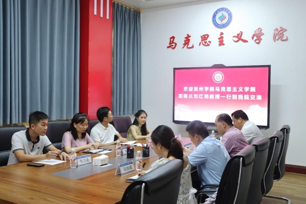 9月23日上午,贺州学院马克思主义学院党委副书记、副院长刘红艳教授一行到我院开展交流活动。李玉雄院长在交流前进行了会见,并介绍了我院情况。我院副院长刘国普、院长助理李博豪以及教师代表出席会议,双方就相关工作进行了深入交流。