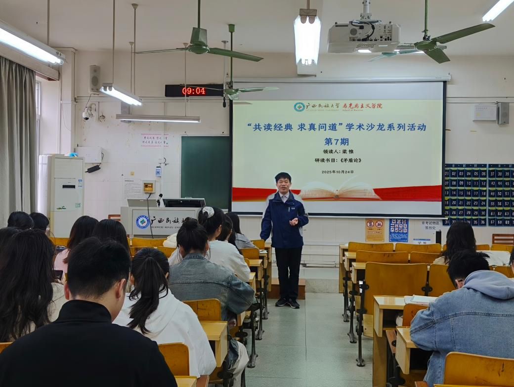 10月24日上午,马克思主义学院于校友楼601教室开展研究生“共读经典 求真问道”第七期学术沙龙系列活动。此次沙龙由梁惟老师领读《矛盾论》,2024级研究生参加。