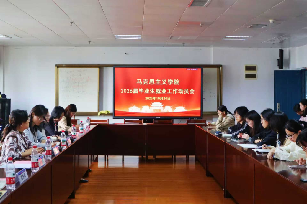 10月24日,马克思主义学院在文综楼1807室召开2026届毕业生就业工作动员会。本次会议由我院党委副书记谢蓓主持,学院党委书记王颖慧、专业负责人徐江虹、毕业班班主任宋勇刚、唐林峰、韦雯、团委书记周婷及2026届全体毕业生参会。