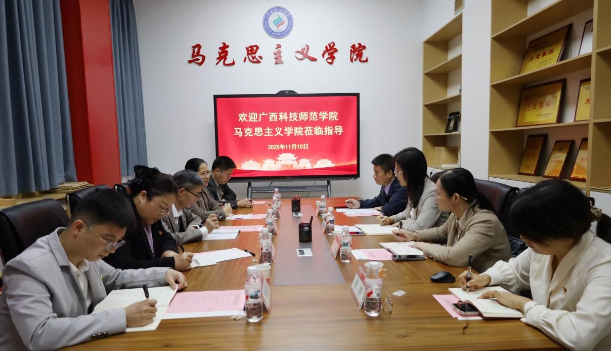 11月10日上午,广西科技师范学院马克思主义学院党总支副书记、院长李乐军教授一行到我院开展党建工作专题调研,旨在通过经验共享、资源互补,推动双方党建工作高质量发展。我院党委书记王颖慧、党委副书记谢蓓、院长助理李博豪、团委书记周婷及教师党支部书记参会。