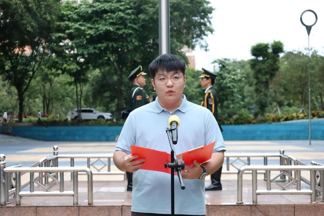 2024级政治学专业硕士研究生魏亦博同学作为学生代表发言,号召同学们坚定理想信念,传承红色基因,将爱国情、强国志、报国行自觉融入日常学习与未来发展中,努力成长为堪当民族复兴重任的时代新人。
