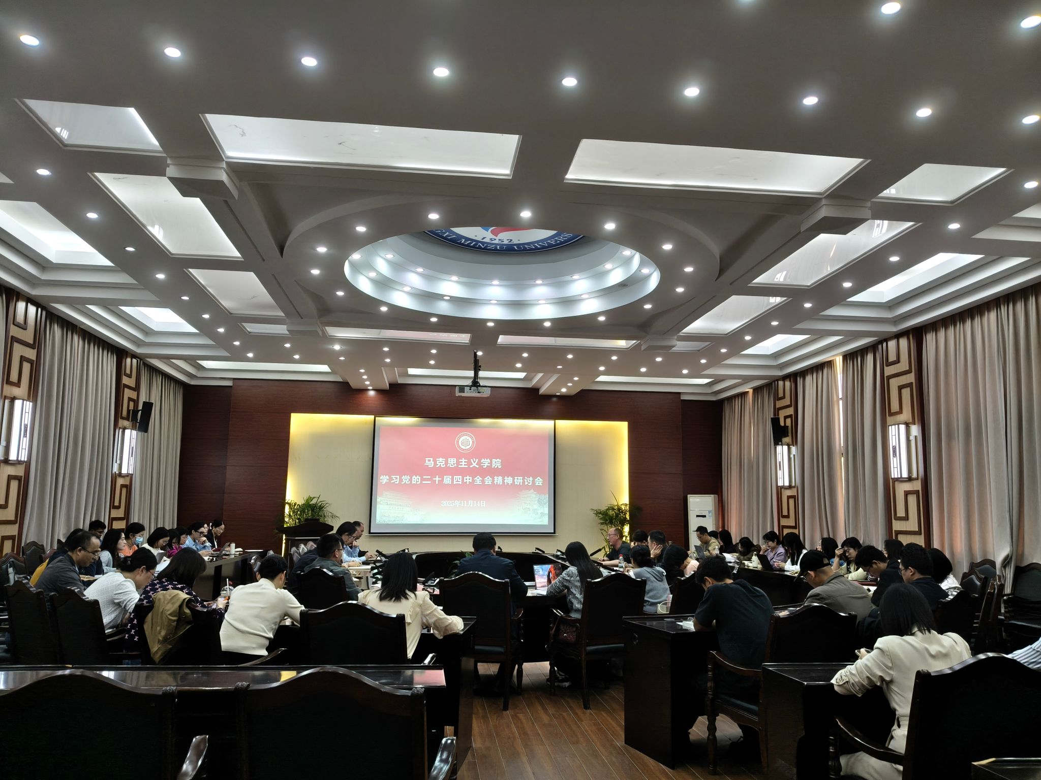 11月14日下午,马克思主义学院在国交处大会议室组织召开学习党的二十届四中全会精神研讨会,学院领导班子和全体教职工参会。