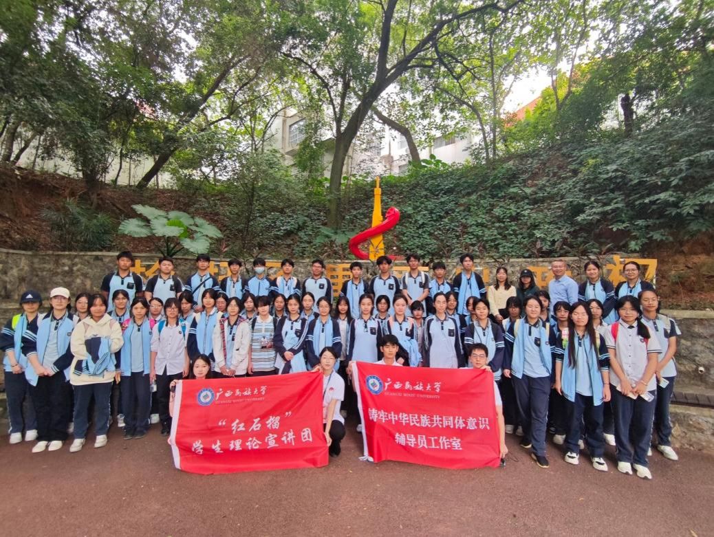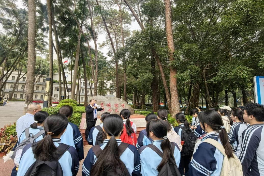 活动伊始,刘国普副院长热情欢迎南宁市第二十中同学们来我校开展研学活动。他为同学们讲解我校民族园、大礼堂的文化内涵与历史底蕴,并以广西民族大学的校训石为依托,生动阐释了我校“厚德博学、和而不同”的校训精髓。随后,他向同学们介绍了我院中国共产党历史本科专业的办学特色,祝愿同学们在明年六月高考发挥最佳水平,欢迎怀揣理想、热爱党史的学子,填报我院中国共产党历史本科专业。
