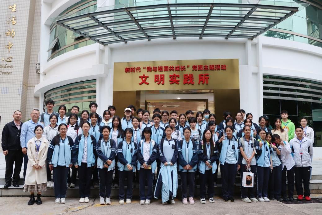 最后,同学们一起走进我校新时代“我与祖国共成长”党团主题活动文明实践所。实践所内设施设备先进、展板图文并茂、视频资源丰富,并有图书展览区。同学们在参观学习中真切感受到党和国家领导人对青年学生的真挚情感和殷切期待。